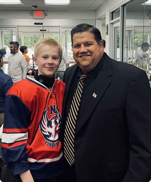 Reggie with special guest of honor Todd Angilly (Bruins Anthem Singer) before "Hockey Night in Natick: Battle Royale"