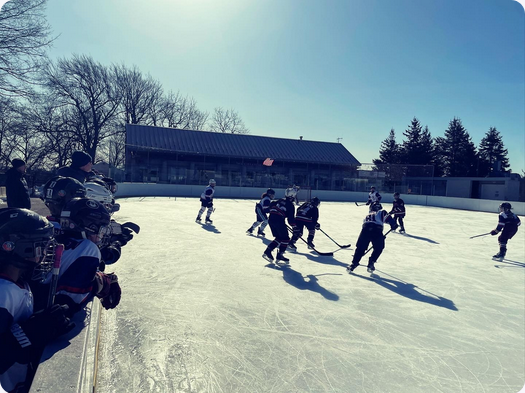Firehawks enjoying an outdoor scrimmage against one of Wellesley's Peewee teams at the Lars Anderson Rink.